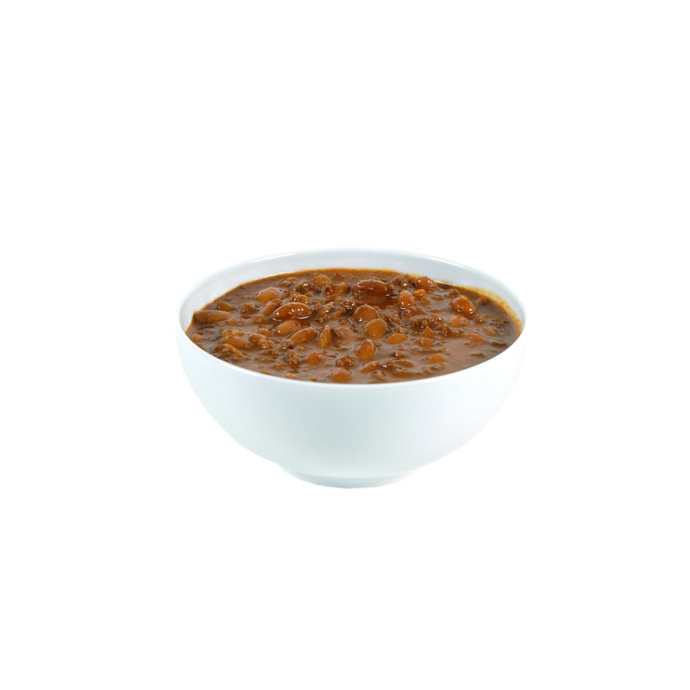 • Tender whole beans and savory ground beef flavor this traditional chili, accented by a rich, flavorful tomato sauce.