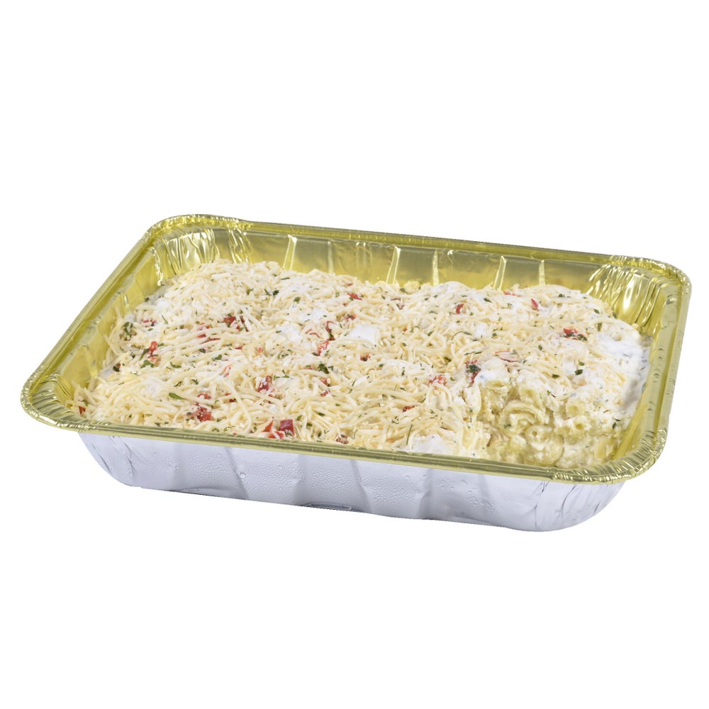 - This made-from-scratch, frozen cavatappi pasta is fully cooked to save you time and labor and provide your customers with a high-quality entree. It offers a hearty blend of oven-roasted chicken tenders in a creamy sauce of asiago, mozzarella, cheddar and cream cheeses blended with spiral cavatappi then topped with cheese and herbs.
