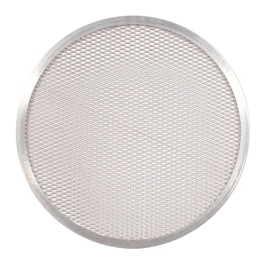 These heavy duty pizza screens are made from an expanded aluminum seamless frame, which provides increased durability and maximum air flow to bake pizzas quickly and efficiently.