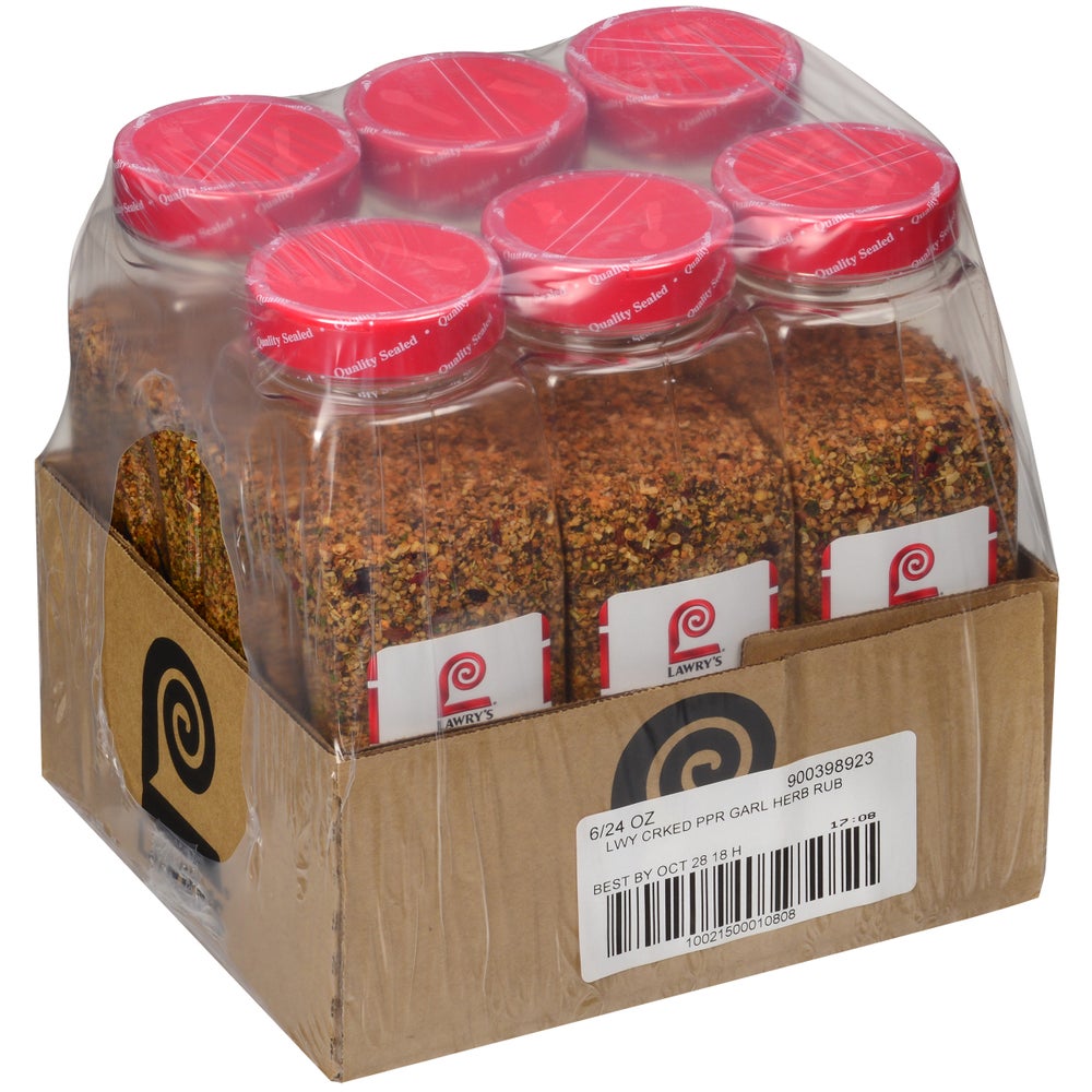 - No preparation necessary. Lawry's Cracked Pepper, Garlic & Herb Rub is ready to use to bring distinctive, herb and peppery flavor to center-of-the-plate rub applications and beyond. Use the top to dispense as little or as much as you desire with our convenient shaker or spoon dispensing options.