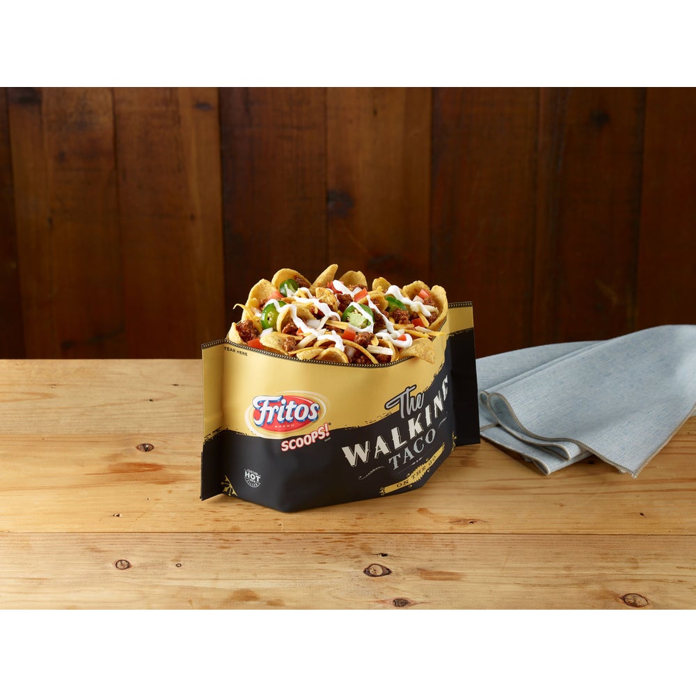 These Fritos have a unique package that features a side tear option to allow for toppings to be added to the chips.