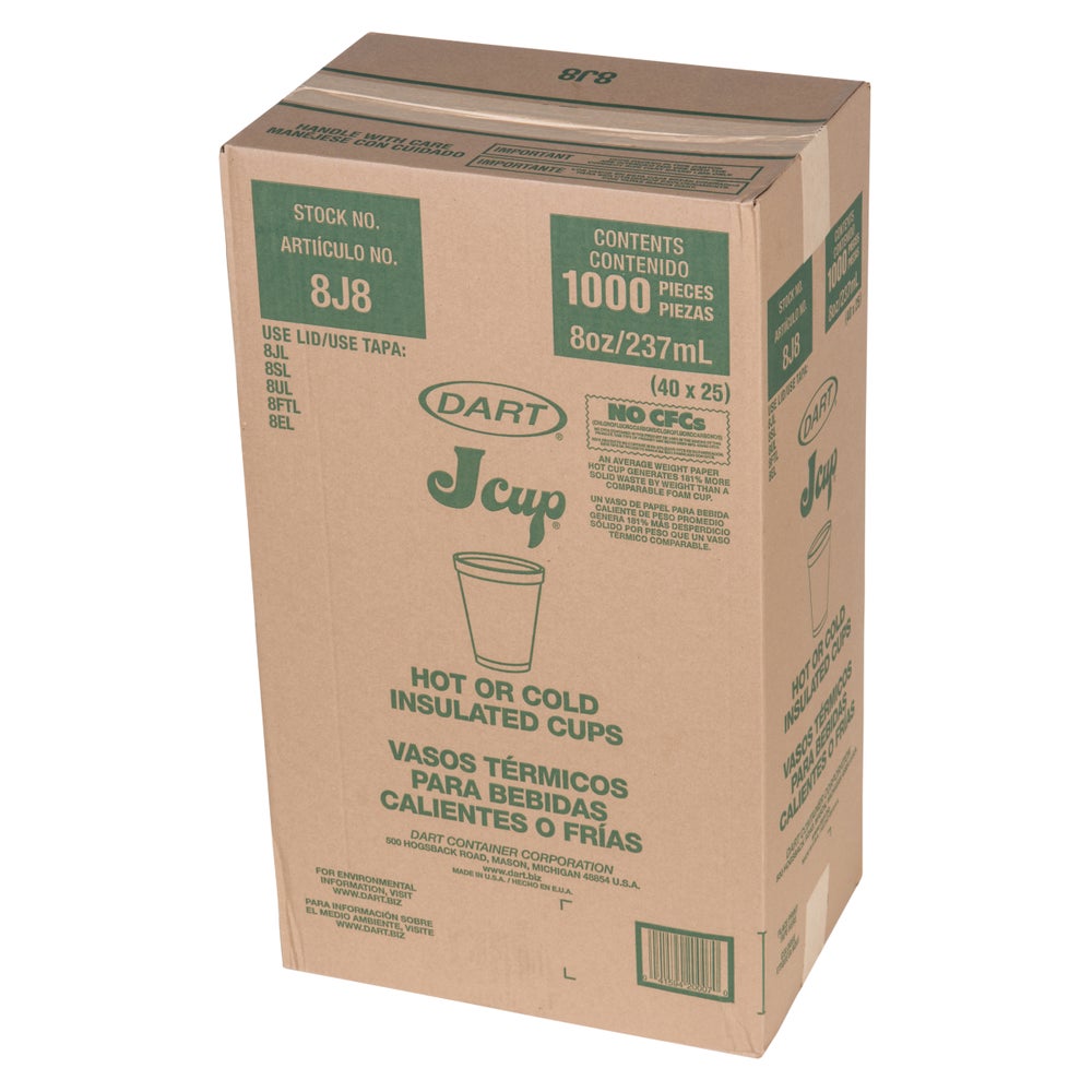 Dart 8 Ounce Foam Hot & Cold Cups, White, Beaded, Polystyrene, 25 Ct Package, 40/Case