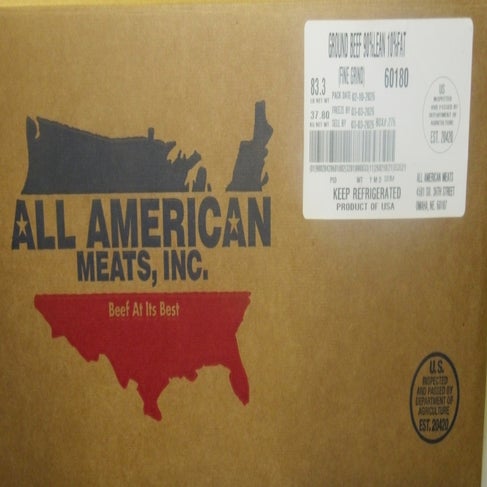 All American Meats Ground Beef, Fine Grind, 90% Lean, Fresh, 10 Lb Avg Bag, 8/Case