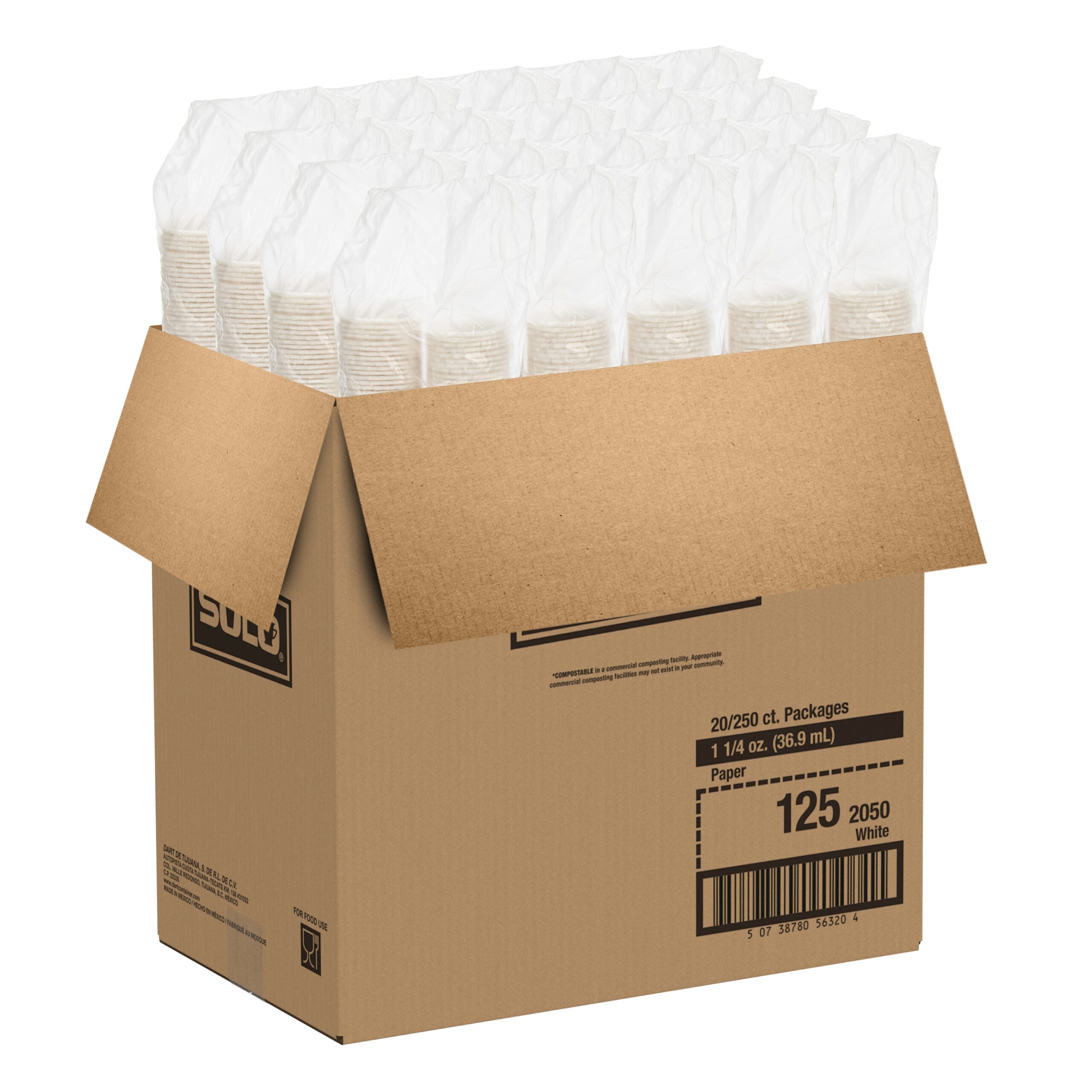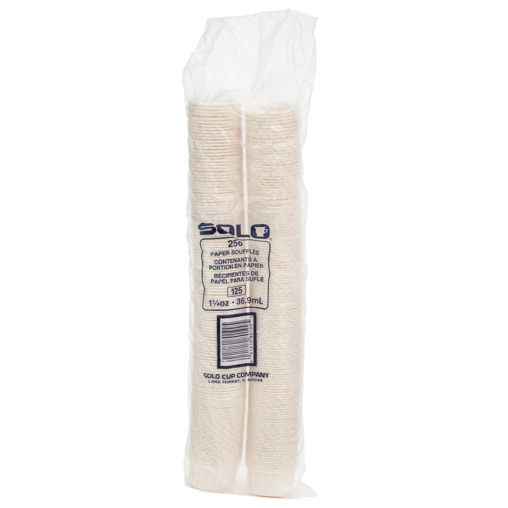 Solo 1.25 Ounce Paper Souffle Portion Cups, White, 250 Ct Package, 20/Case