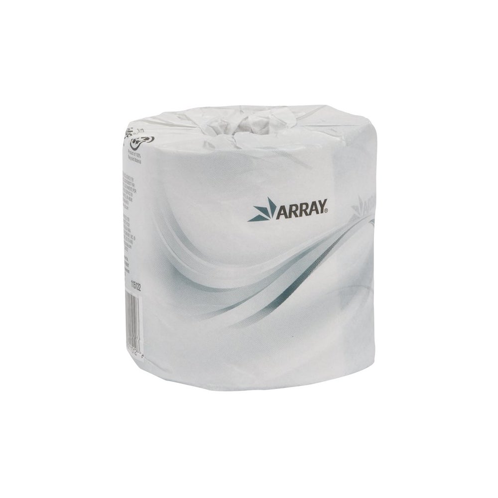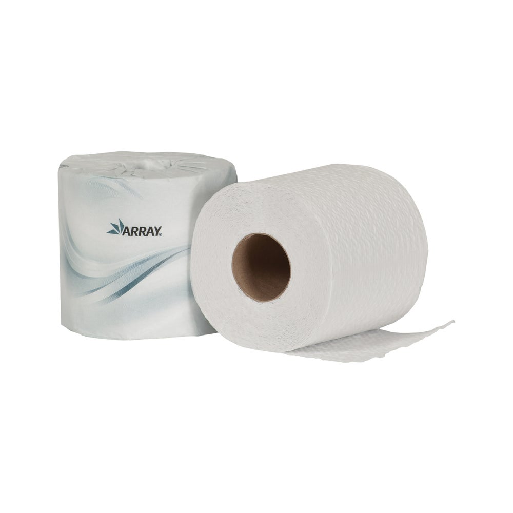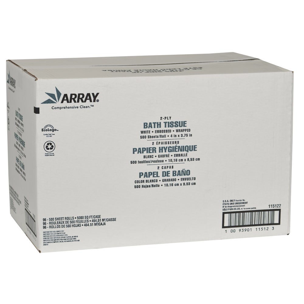 Array 2-Ply Embossed Standard Roll Toilet Tissue, White, 4 x 3.75 Inch Sheets, Individually Wrapped, 500 Ct Roll, 96/Case