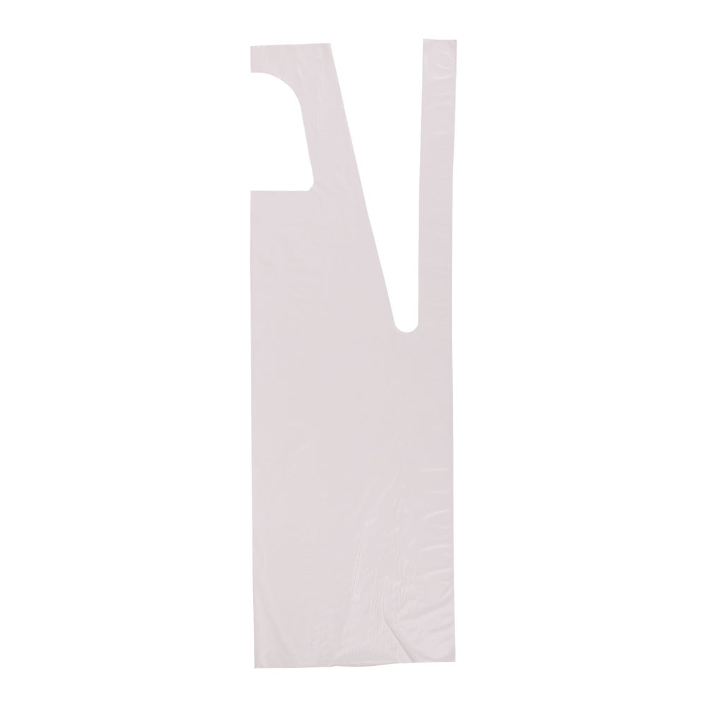 • To protect clothing inexpensively while performing messy tasks, these quality aprons have a soft, embossed texture for comfort. The pure-white aprons come in a durable, medium-weight poly material.