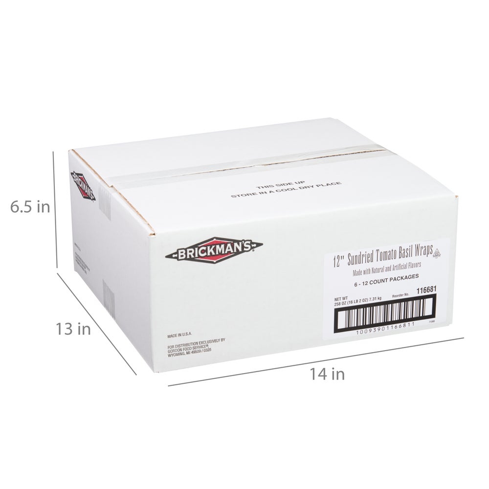 Brickman's 12 Inch Sundried Tomato Basil Flour Tortillas, Shelf-Stable, 12 Ct Package, 6/Case