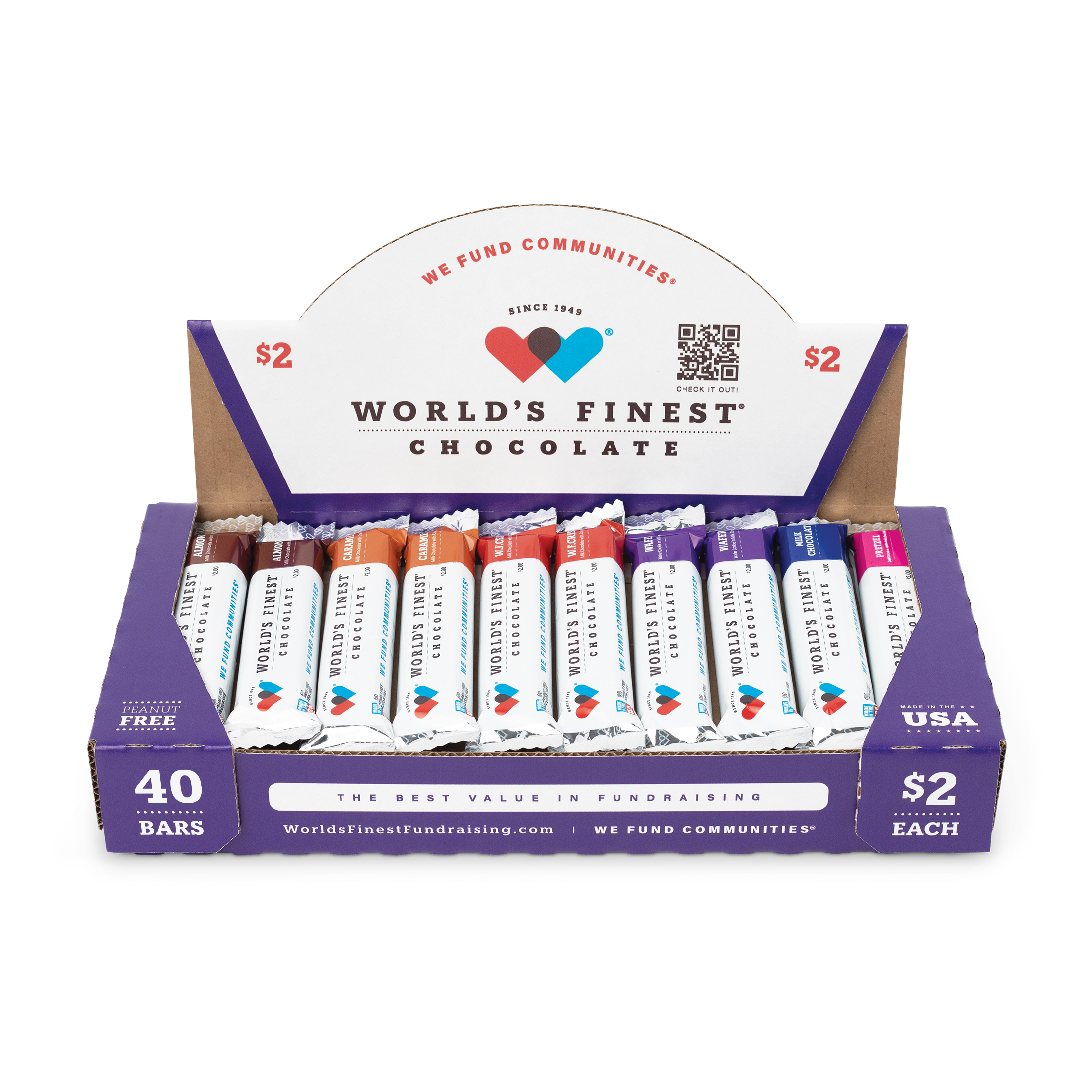 World's Finest Chocolate Variety Pack Chocolate Candy Bar, Almond/Caramel/Pretzel/Milk Chocolate/Wafer/Crisp, 1 Each, 1 Ct Each, 40/Case
