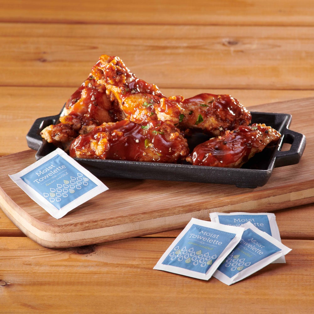 - These moist, lemon-scented towelettes are individually wrapped so they stay moist and sanitary. FDA-approved, these large, soft and thick towelettes are perfect for cleaning hands before and after meals. The fresh lemon scent is energizing and pleasant.