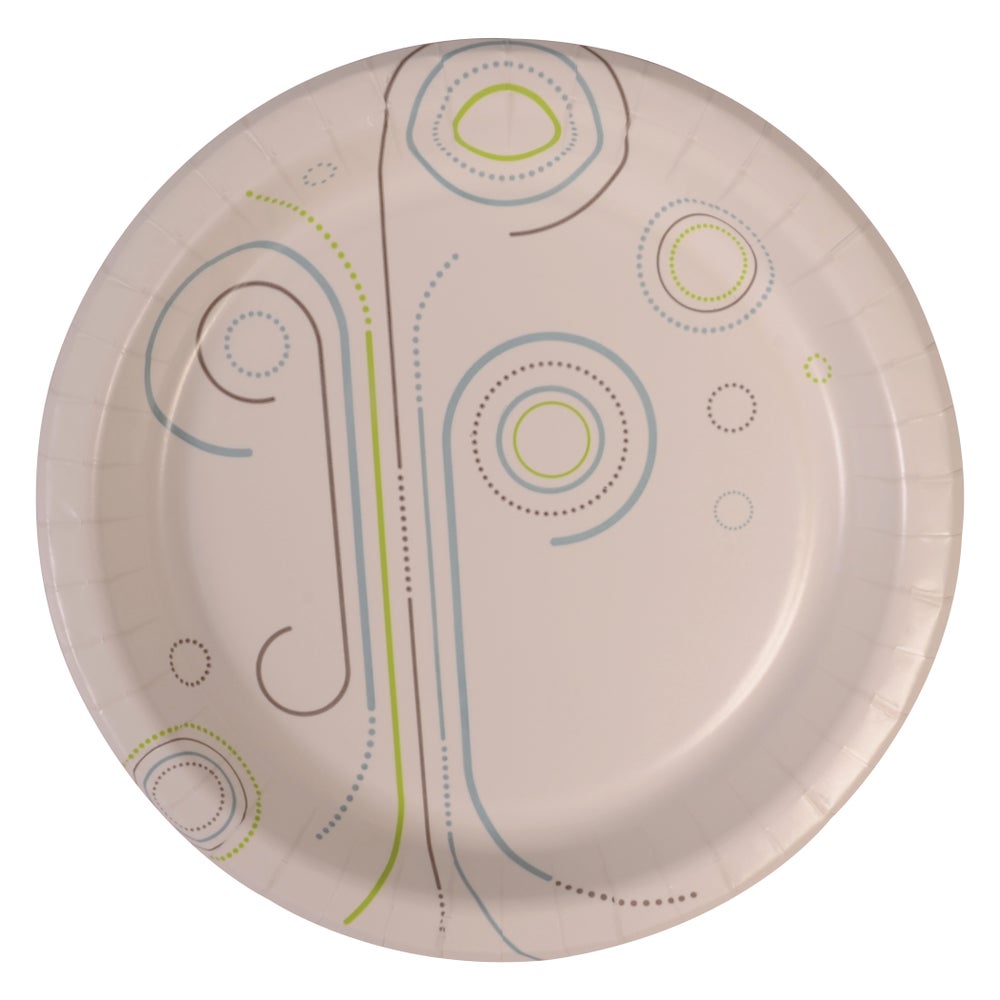 • These 10-inch, medium-weight paper plates are strong, sturdy and soak-through resistant, making them ideal for heavier meal offerings. The deep well helps reduce spills. They are made from 100% plant-based renewable resources. The attractive Aspire pattern provides visual appeal.