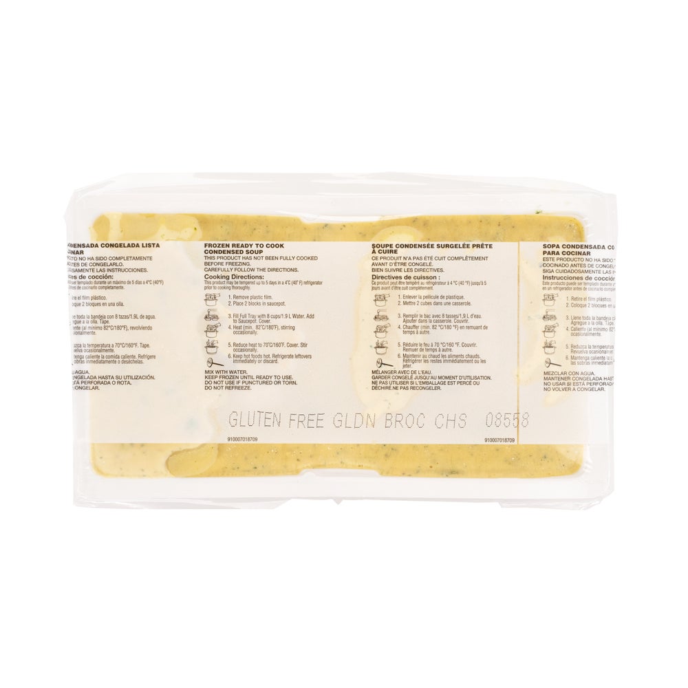 A bowl of our Golden Broccoli Cheese Soup, served with fresh-baked bread, is hearty enough to serve on its own, or you can premium-ize it with whatever's fresh in your kitchen. This frozen soup has a storage life of 638 days in your freezer and yields approximately 384 fluid ounces of hearty soup. At Campbell's Foodservice, we make carefully crafted soups, so you can be proud to use and serve them all year long. Made with carefully selected ingredients with options rich in protein, fiber, or vitamins, our soups are full of what guests love, not what they don't.