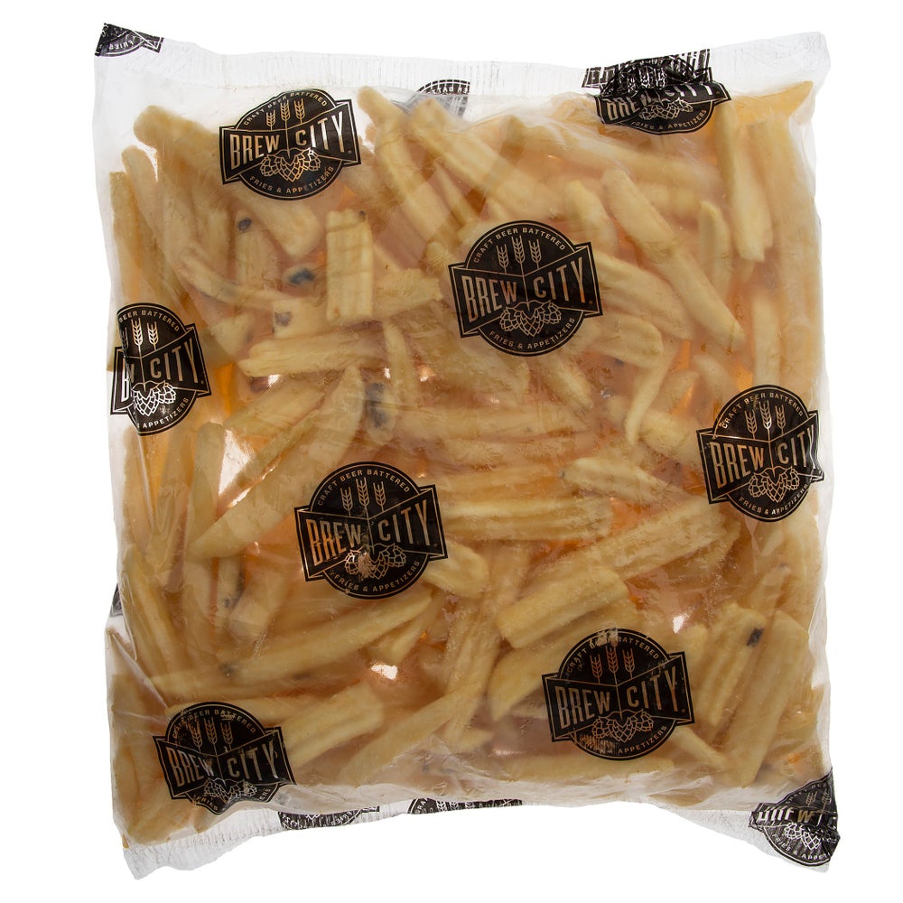 Brew City 3/8 x 3/4 Inch Extra Long Fancy Ridge Cut French Fries, Beer Battered, Bakeable, Frozen, 5 Lb Bag, 6/Case