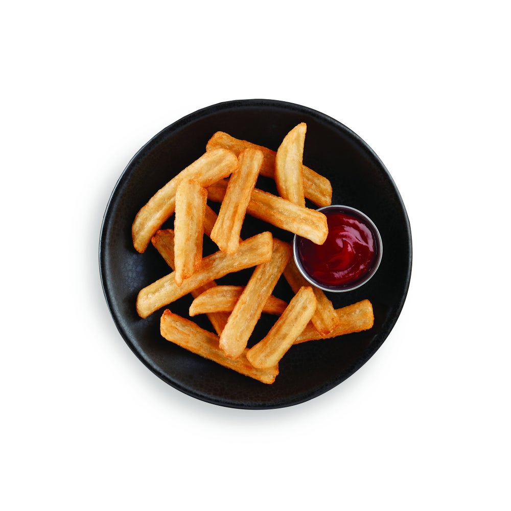 These fries have a ridged texture and are coated in a real beer batter so they are extra-crisp with outstanding heat retention.