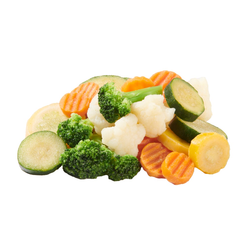 - This colorful Normandy vegetable blend offers a tasty medley of broccoli florets, cauliflower clusters, crinkle-cut sliced carrots, sliced zucchini and sliced yellow squash.