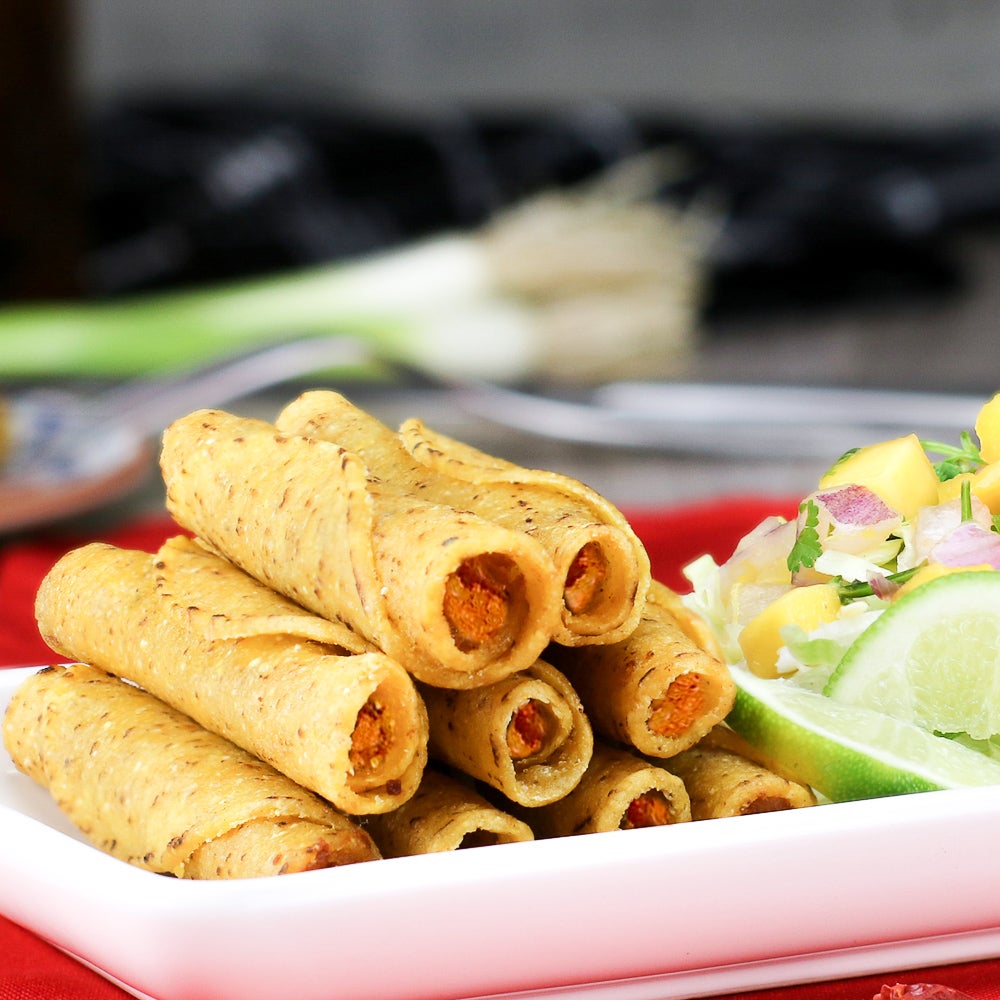 These shredded chicken taquitos are ideal for hors d'oeuvre applications.