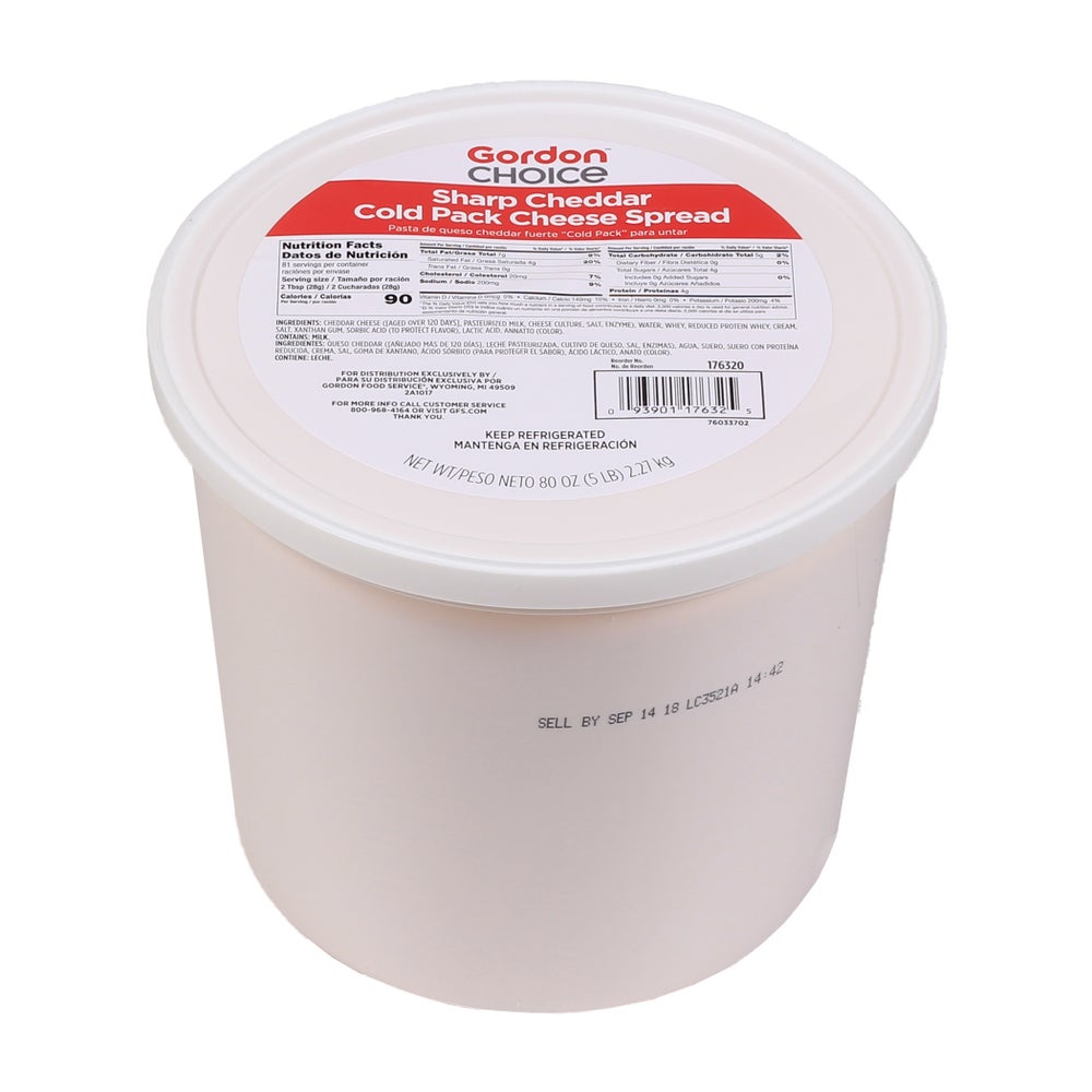 Gordon Choice Sharp Cheddar Cheese Spread, Cold Pack, 5 Lb Tub, 2/Case
