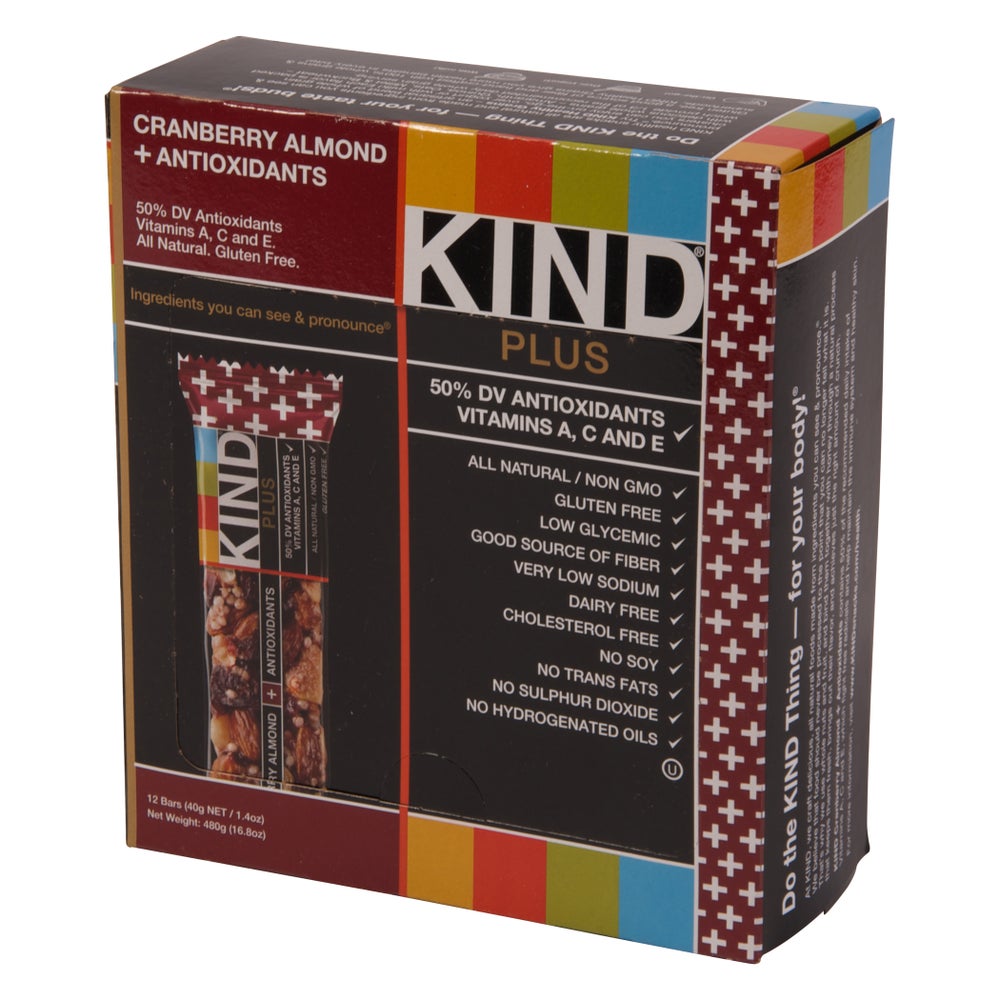 KIND Snacks Cranberry Almond Bars, 1.4 Ounce, 12 Ct Box, 6/Case