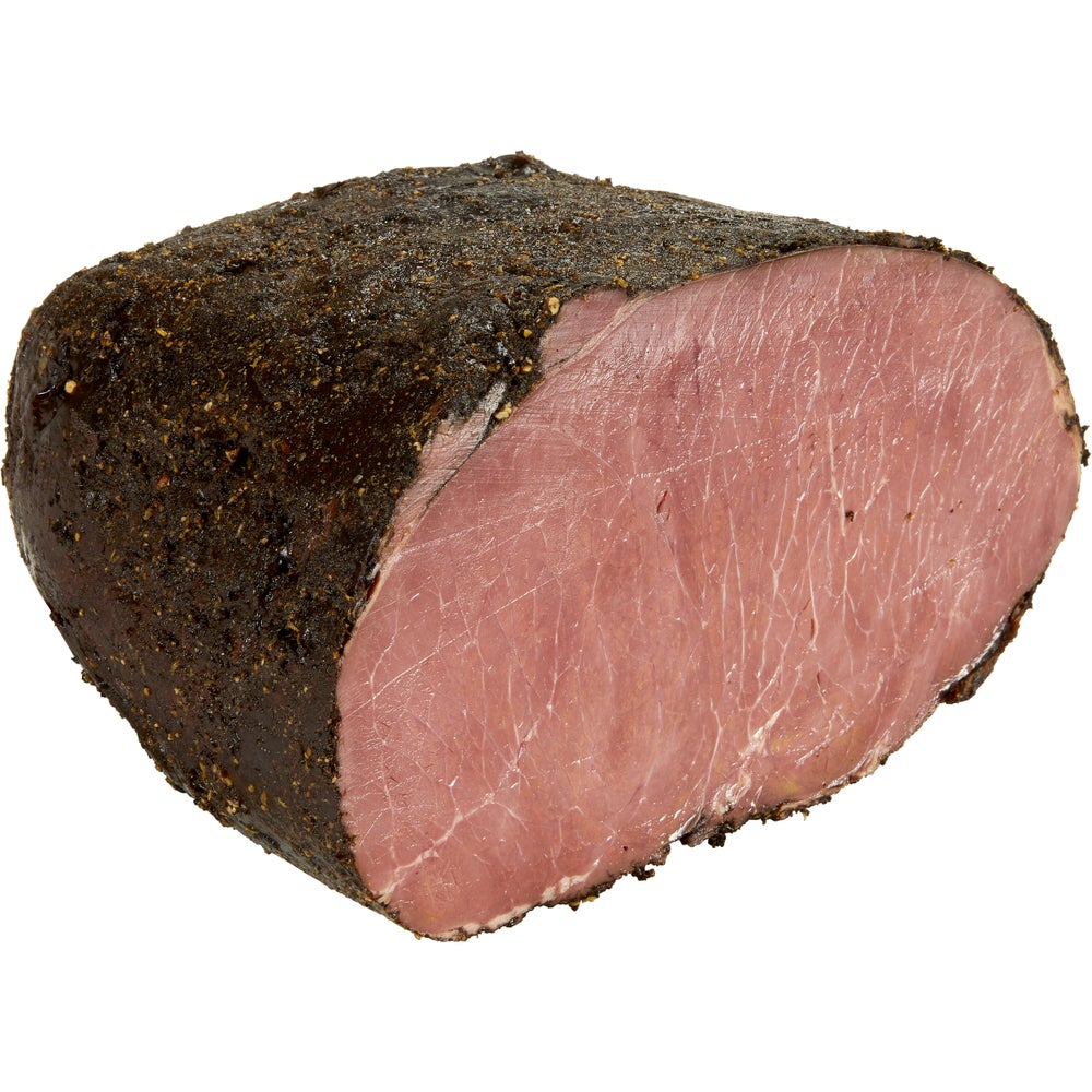 This top round pastrami features an added soy content and is deli-faced for enhanced visual appeal and sliceability.