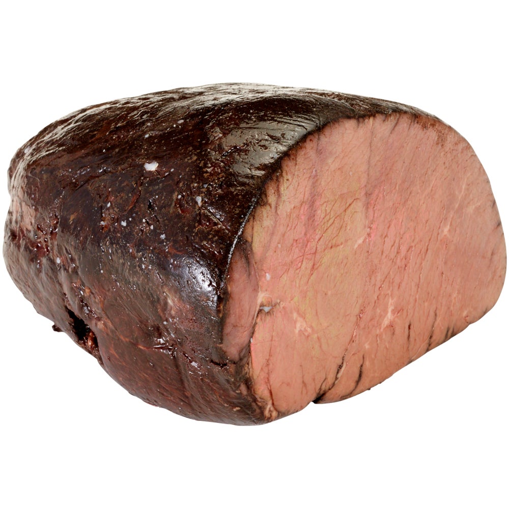This USDA choice top round roast beef has been cooked to rare and features an all-natural flavor.