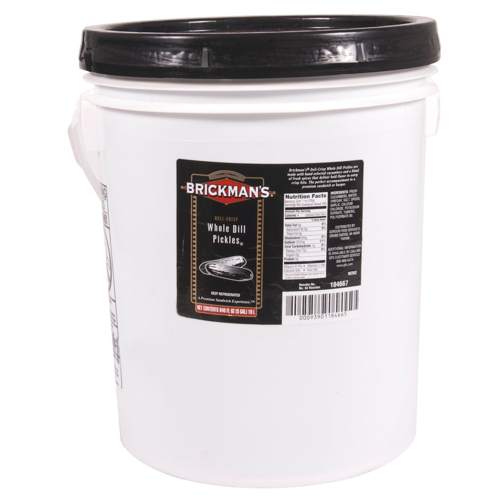 Brickman's Dill Pickles are made with the freshest, hand-selected cucumbers. A unique blend of fresh spices - that you can actually see in the container - delivers a bold flavor in every crisp bite. A controlled refrigeration process preserves the pickles' fresh cucumber flavor, crispness, and color. 100 percent useable counts and consistent sizing for all of our pickles help you deliver the same appealing plate presentation time after time.