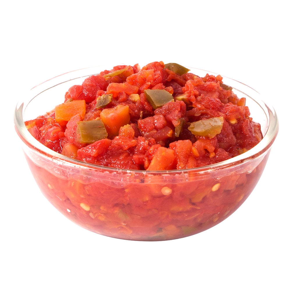 These diced California tomatoes are vine-ripened, consistently cut 3/4 inch pieces, mixed with chopped green chilies, and packed within hours of harvest for full flavor, color, and aroma.