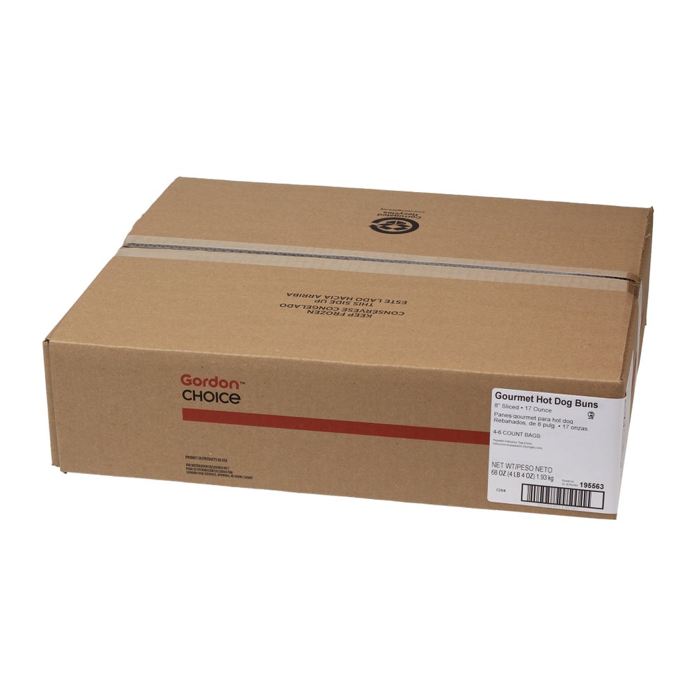 Gordon Choice 8 Inch Jumbo Hot Dog Buns, Sliced, Frozen, 6 Ct Package, 4/Case