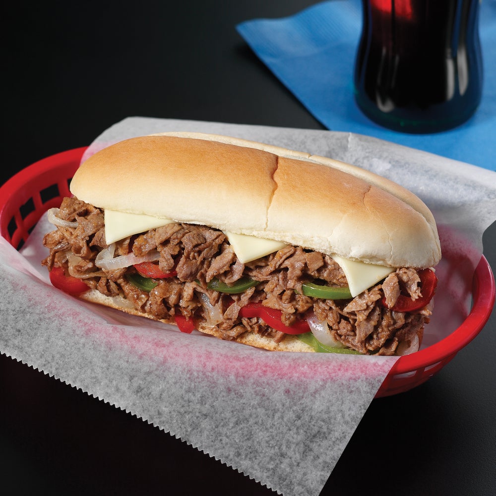 This patented steak provides a versatile, portion-controlled sirloin steak ideal for creating Philly-style cheesesteaks. The Steak-Eze portions separate easily, allowing for a convenient, labor saving preparation.
