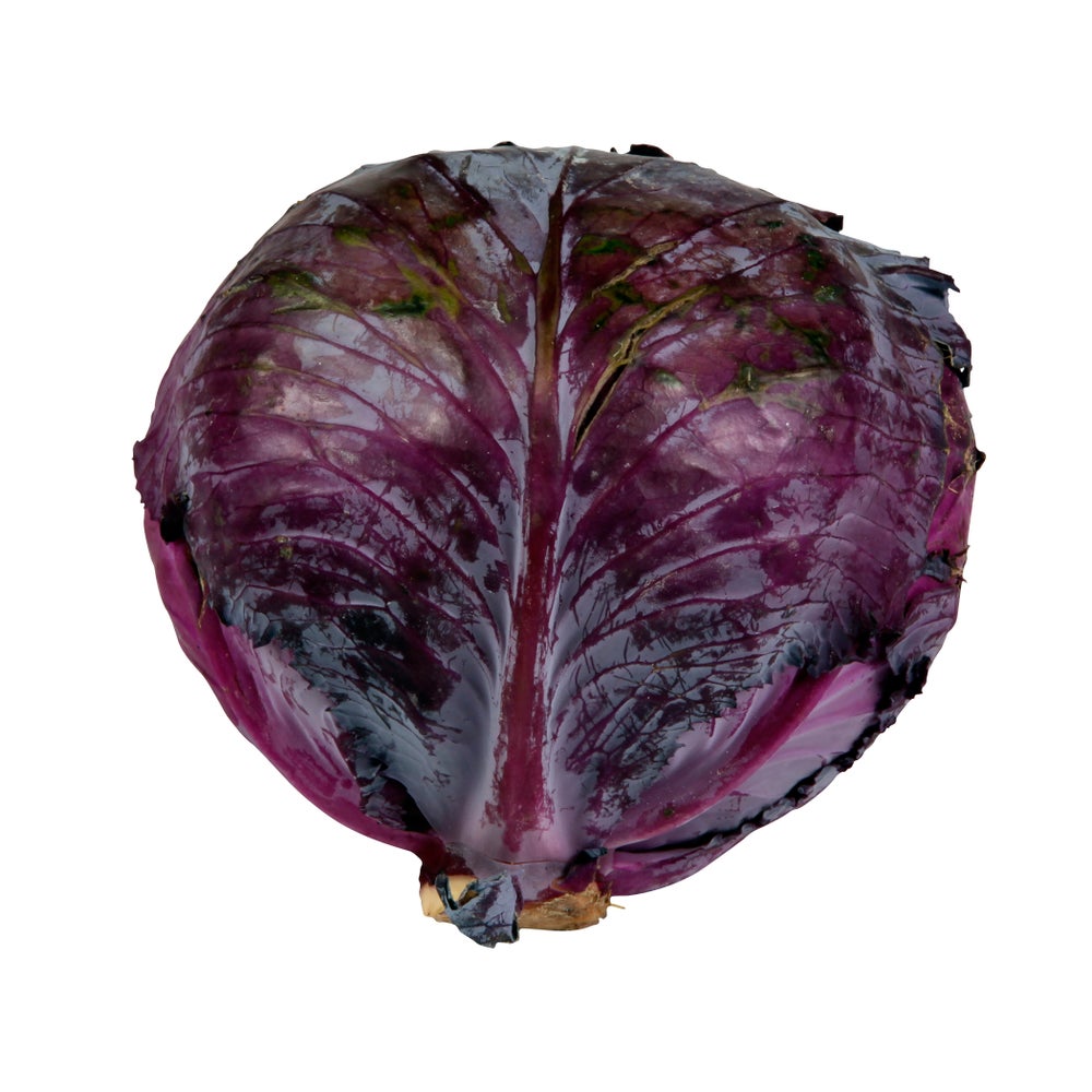 These cabbage heads are compact with waxy, ribbed leaves that are deep purple. Cabbage has a mild, earthy flavor with notes of broccoli and lettuce. Brand may vary.