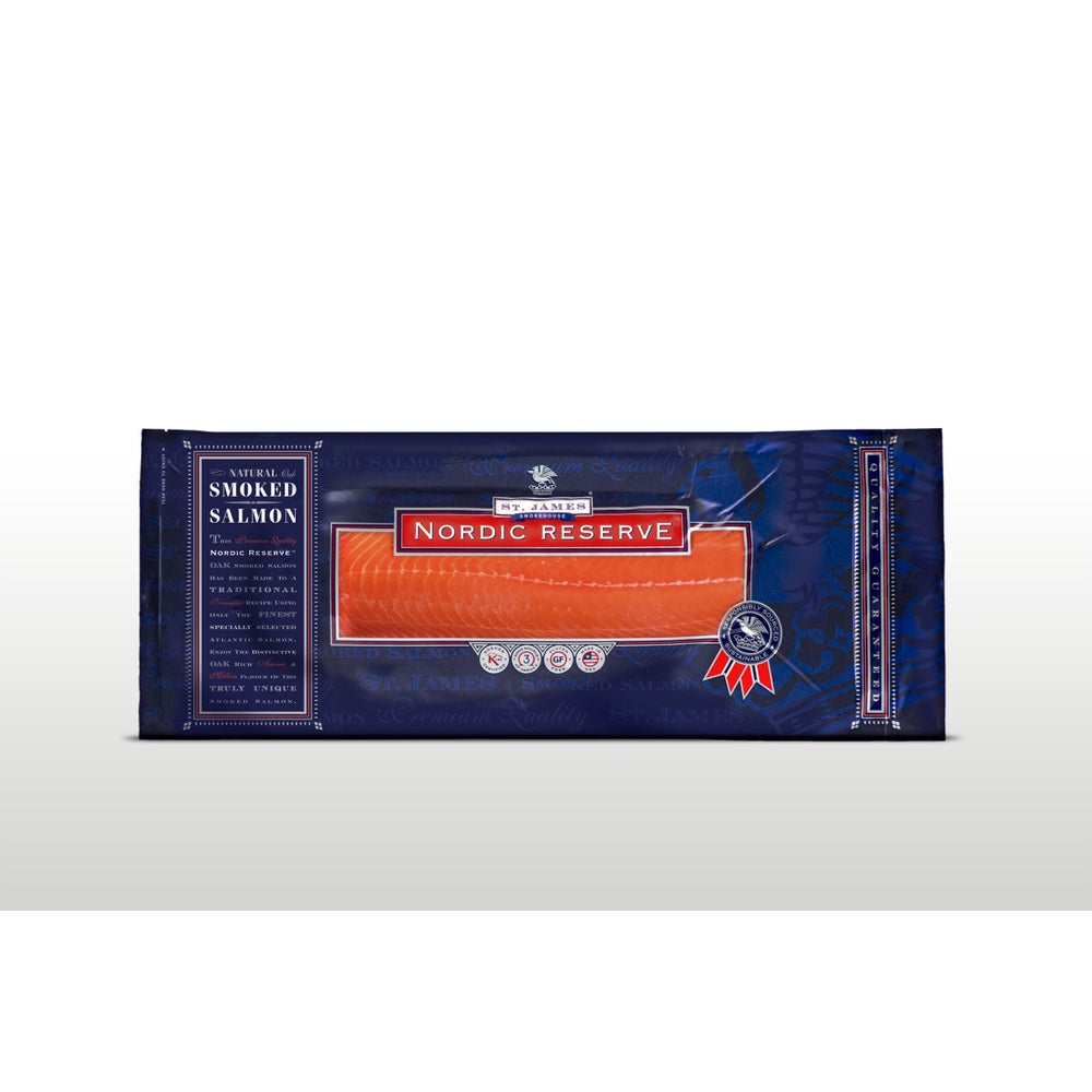 Nordic Reserve Atlantic Smoked Salmon, Sliced Skinless, 2-3 Pound Average, Cooked, Frozen, 2.5 Lb Avg Package, 18/Case