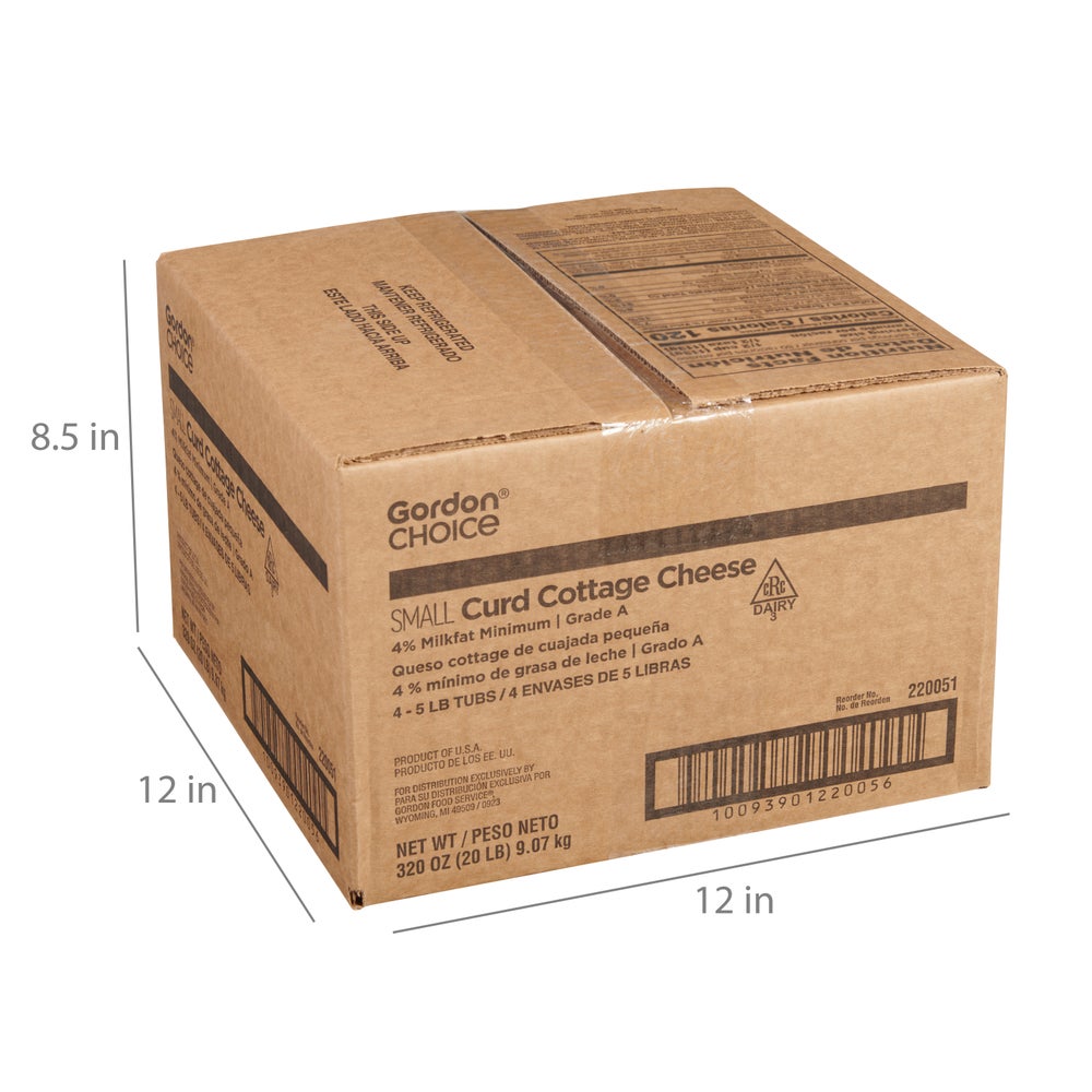 Gordon Choice 4% Milk Fat Small Curd Cottage Cheese, Grade A, 5 Lb Tub, 4/Case