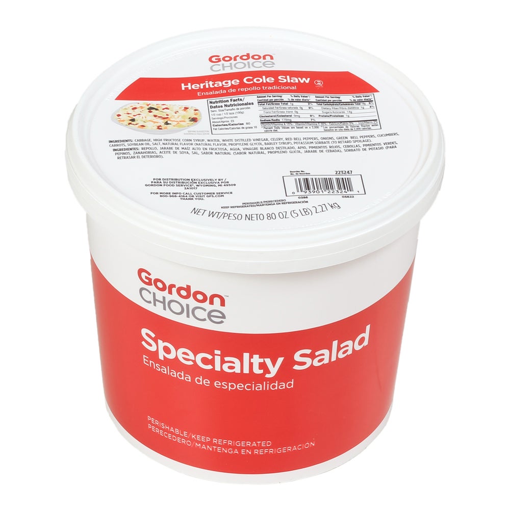 Gordon Choice Heritage Cole Slaw, Vegan, Low-Fat, Refrigerated, 5 Lb Tub, 2/Case