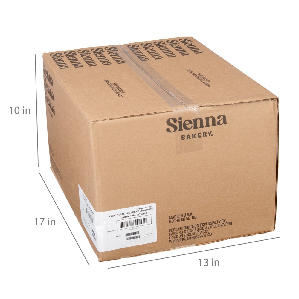 Sienna Bakery Decadent Chocolate Brownie, Iced, Frozen, 104 Oz Tray, 4/Case