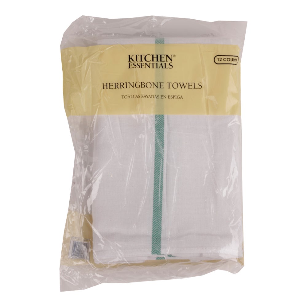 Kitchen Essentials Cotton Dish Towels, Herringbone Stripe, 15 x 26 Inch, 12/Package