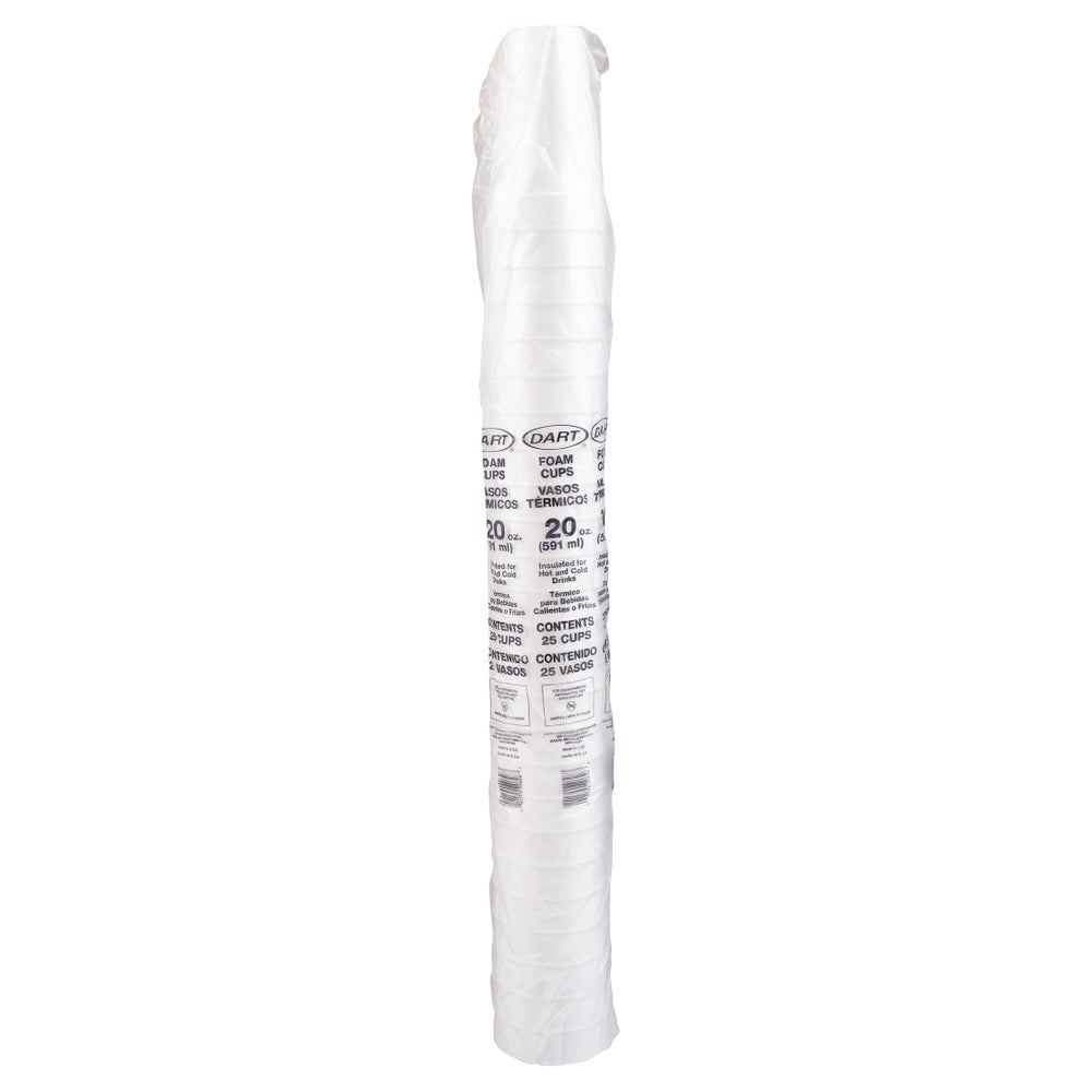 Dart 20 Ounce Foam Hot & Cold Cups, White, Beaded, Polystyrene, 25 Ct Package, 20/Case