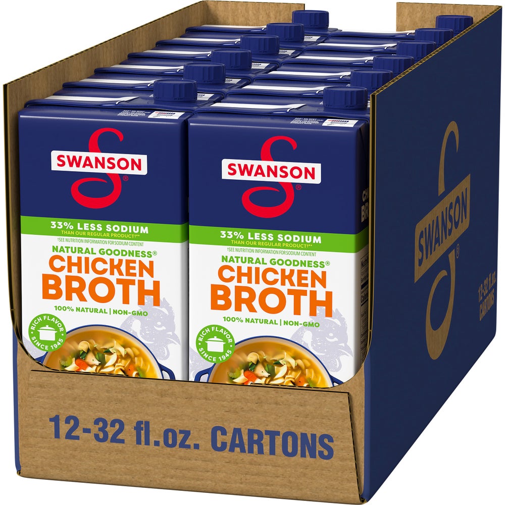 Swanson 33% Less Sodium 100% Natural Chicken Broth, 32 Fl Oz Carton, 12/Case