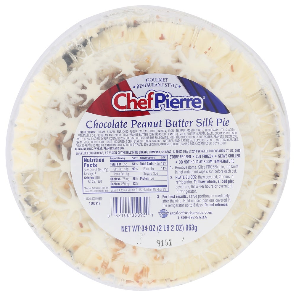 Chef Pierre 10 Inch Gourmet Chocolate Peanut Butter Silk Pies, Frozen, 10 Inch Each, 4/Case