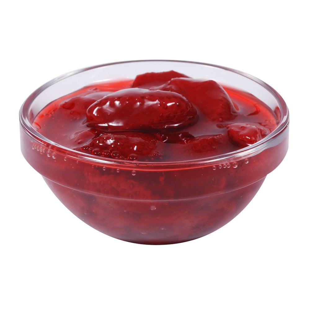 This sliced strawberry topping is full of flavor and may be used in a variety of applications.