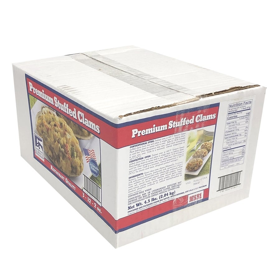 These stuffed clams offer natural shells, loaded with a stuffing of blended clams, cheese, onion, peppers, and savory spices. There are approximately two ounces of stuffing in each shell.