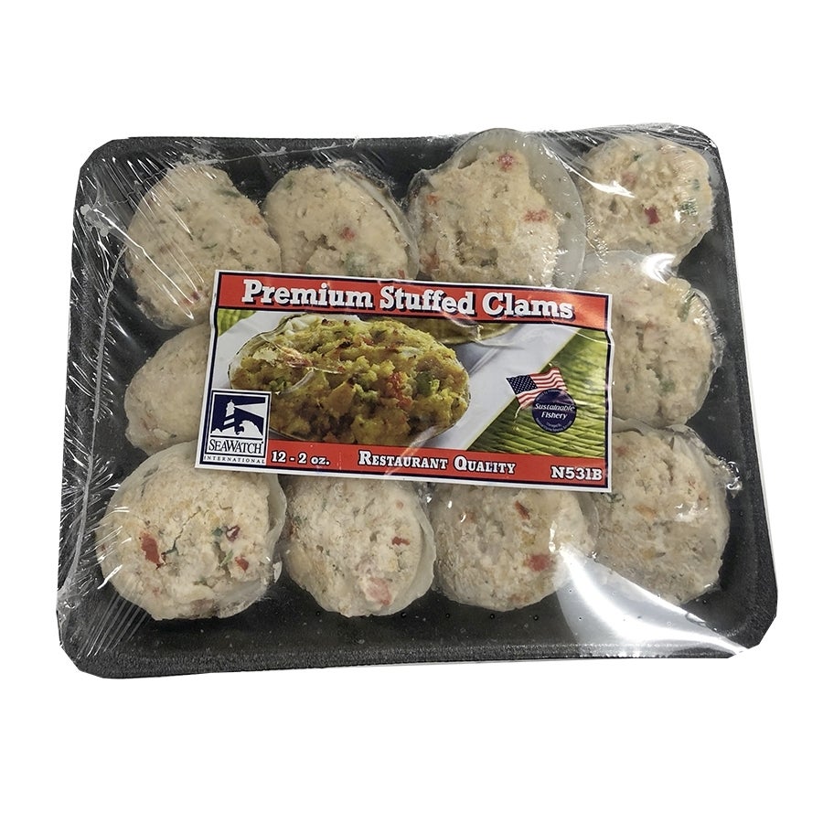 Sea Watch Stuffed Clam Shells, Wild-Caught, 2 Ounces of Stuffing, Natural Shell, Marine Stewardship Council, Raw, Frozen, 12 Ct Tray, 3/Case