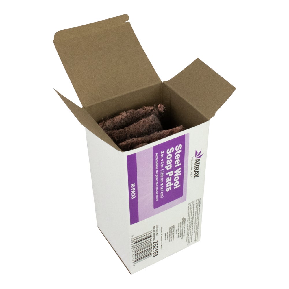 Array Steel Wool Soap Pads, 3 x 5 Inch, 10 Ct Box, 12/Case