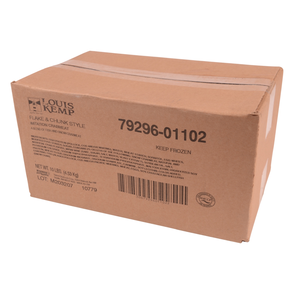 Crab Surimi Meat, Chunks & Flakes, Imitation, Cooked, Frozen, 2.5 Lb Each, 4 Per Case