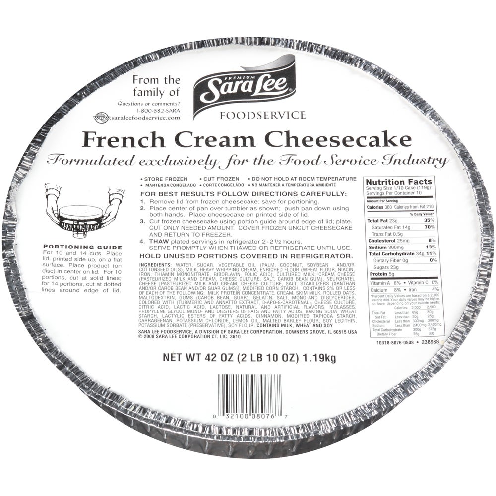 Sara Lee French Cream Cheesecake, Frozen, 10 Linear Inch, 42 Oz Cake, 8/Case