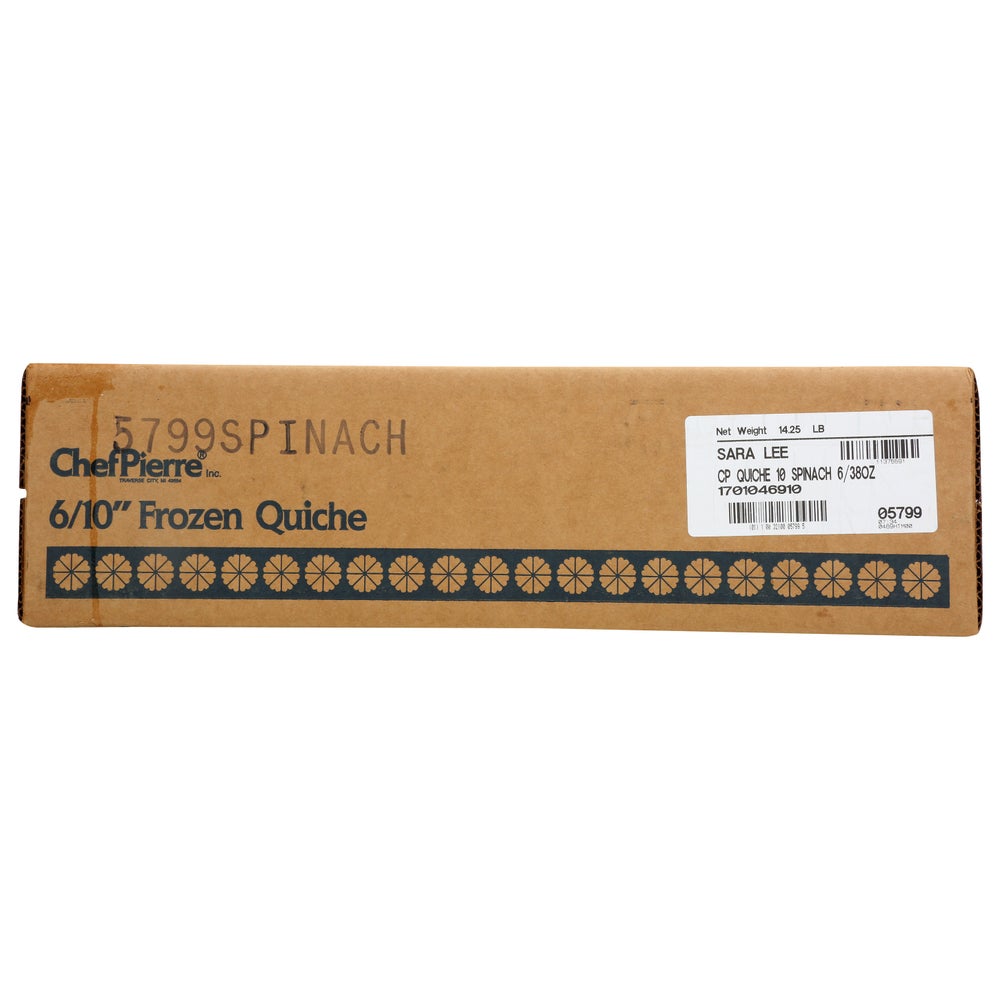 Chef Pierre 10 Inch Spinach Bacon Quiche, Frozen, 10 Inch Each, 6/Case