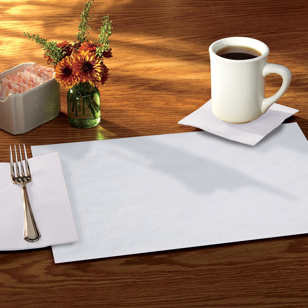 Gordon Choice 9.75 x 14 Inch Paper Placemats, Embossed Floral Design, 1000/Case