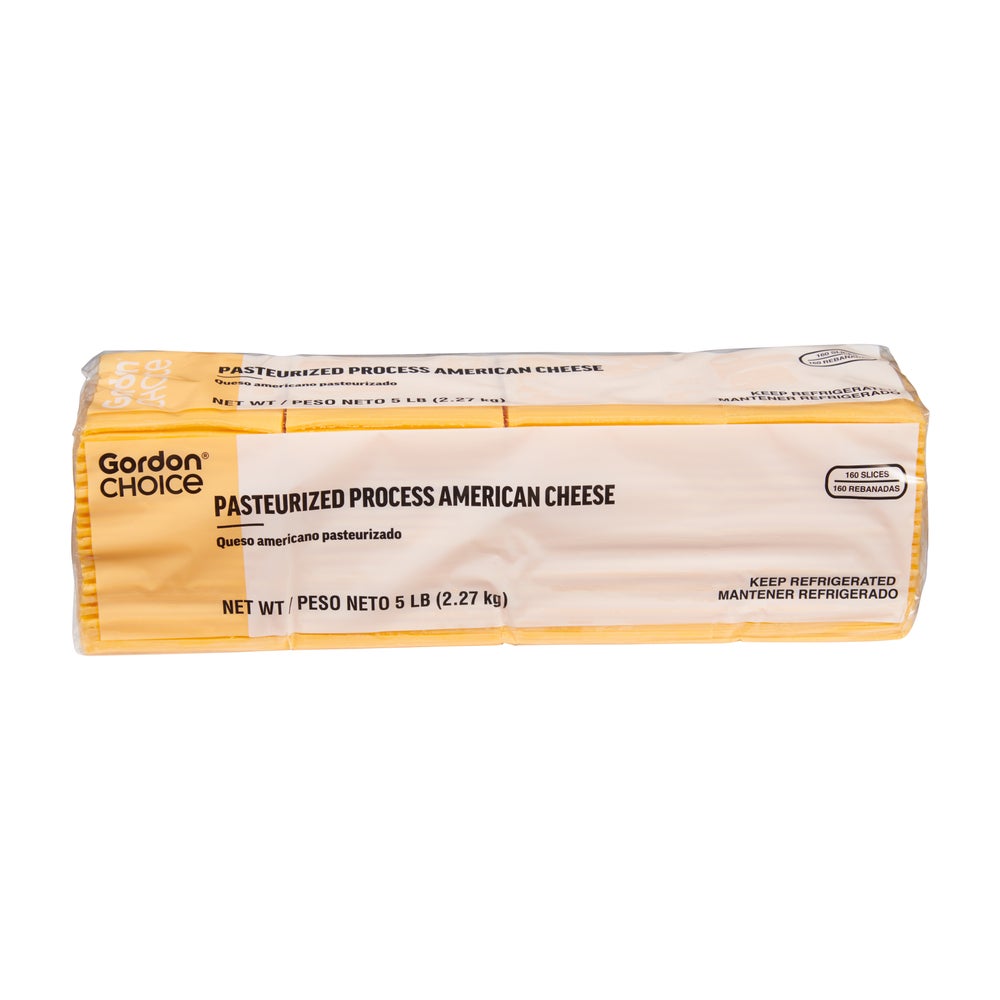 Gordon Choice Pasteurized Process Yellow American Cheese, Sliced, 160 Count, 0.5 Ounce, 5 Lb Loaf, 4/Case