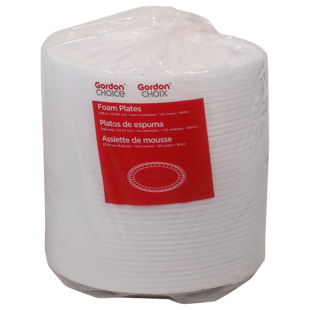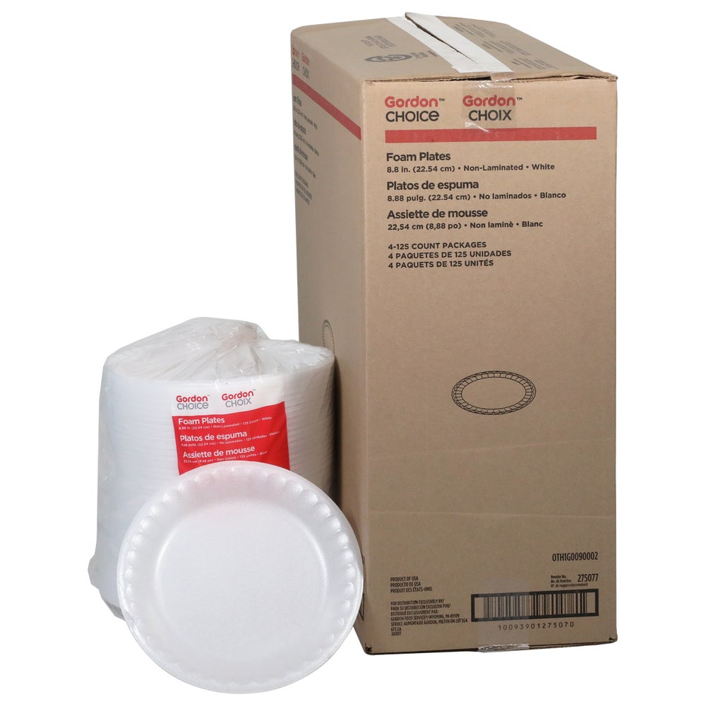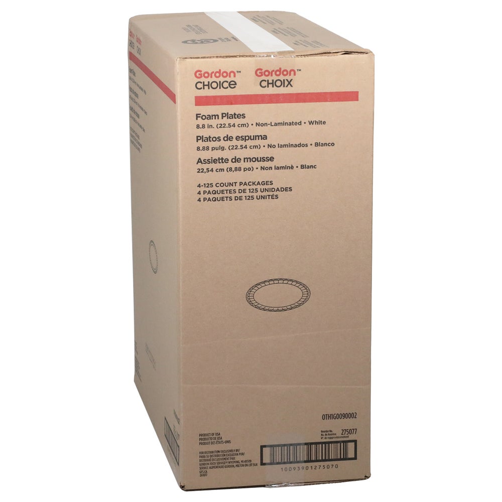 Gordon Choice 8.88 Inch Unlaminated Foam Plates, White, Polystyrene, 125 Ct Package, 4/Case