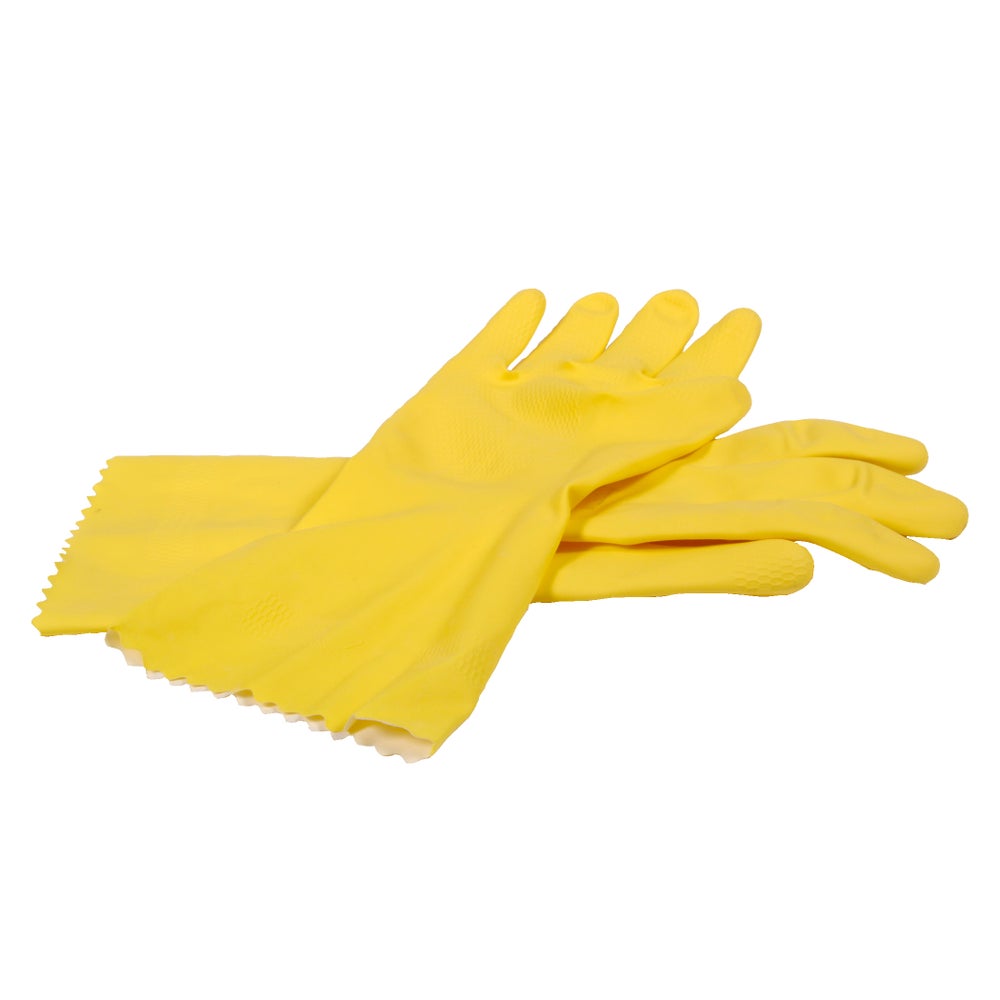Array Reusable Flock-Lined Latex Gloves, Large, Yellow, 12 Inch, 2 Pc, 1/Each