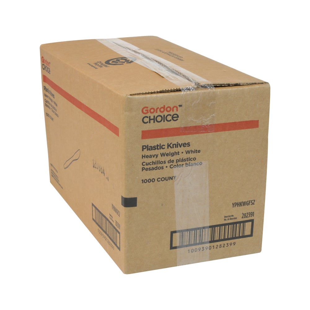 Gordon Choice Heavyweight Plastic Knives, White, Hollow Design with Full-Length Handles, Polystyrene, 1000/Case