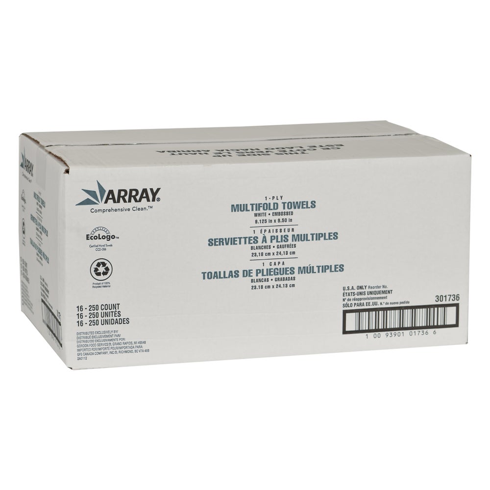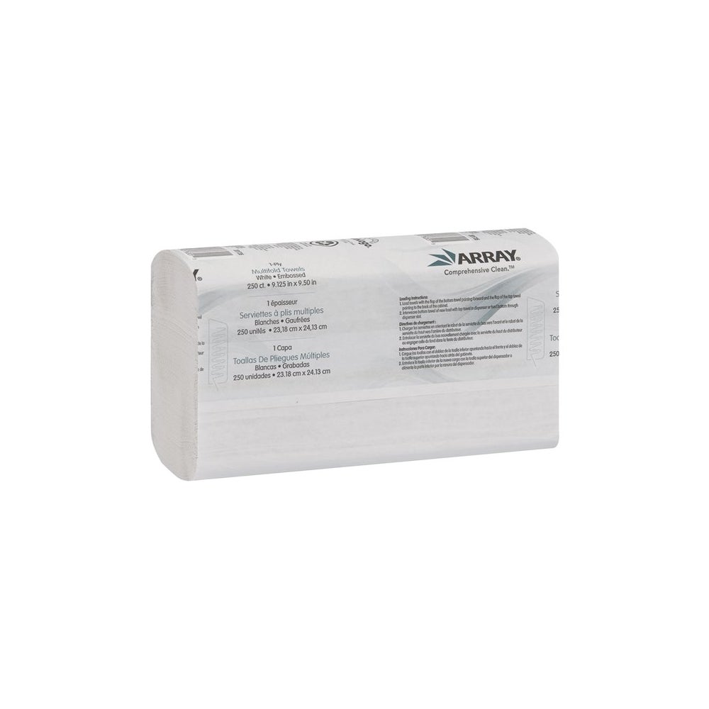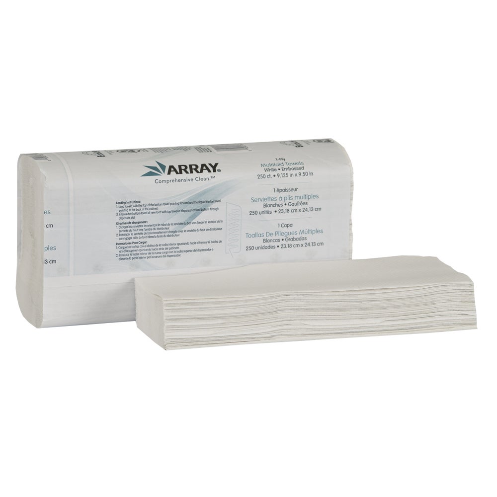 • These Array multi-fold towels provide the right combination of quality, performance and value. An embossed, multi-fold design increases hand feel and results in less towel consumption. These are the standard multi-fold towels that fit into a wide range of dispensers.