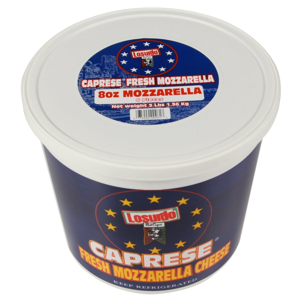 Losurdo Bel Capri Caprese Fresh Mozzarella Cheese, Ovoline, Packed in Brine, 3 Lb Tub, 2/Case